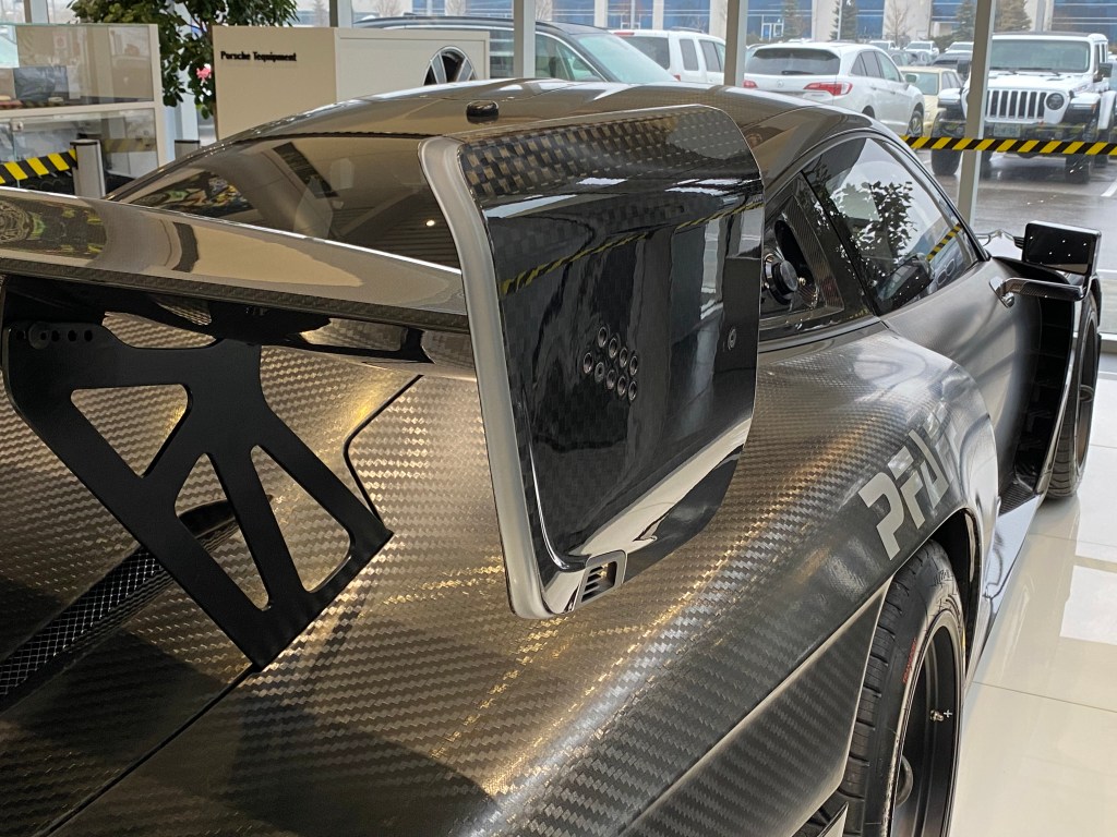 This post is a follow-up to the 996 GT3RS spot. Sitting right beside the entrance/exit to the Pfaff Porsche dealership was a naked carbon fibre 935 Tribute Race Car. Given that I had only seen the car through pictures, I have always been wanting to see an example in person. And so, after hearing that the owner of the Pfaff Porsche dealership was able to acquire one of only 2 cars to come to Canada, I had to go see it, specially due to the fact that it was purposely put on display in the showroom.